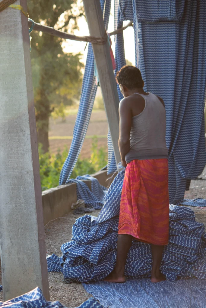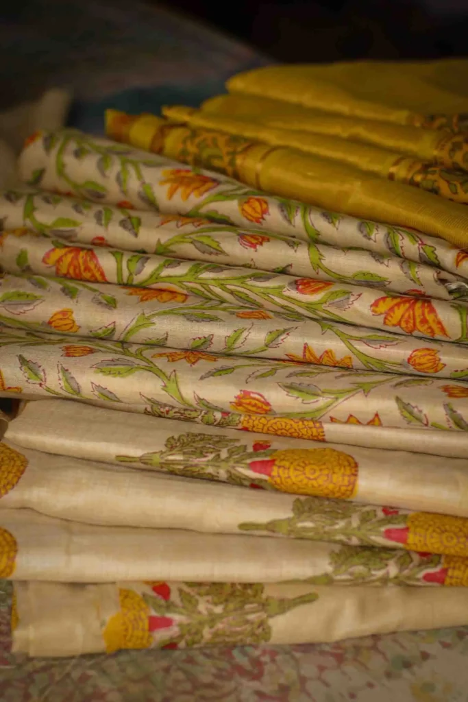 The essence of our photoshoot lies in the intricate details, from the initial washing and cloth processing to the skilled artisans nurturing the fabrics. It’s a visual symphony of colors, prints, and the transformation of raw fabric into a finished product.