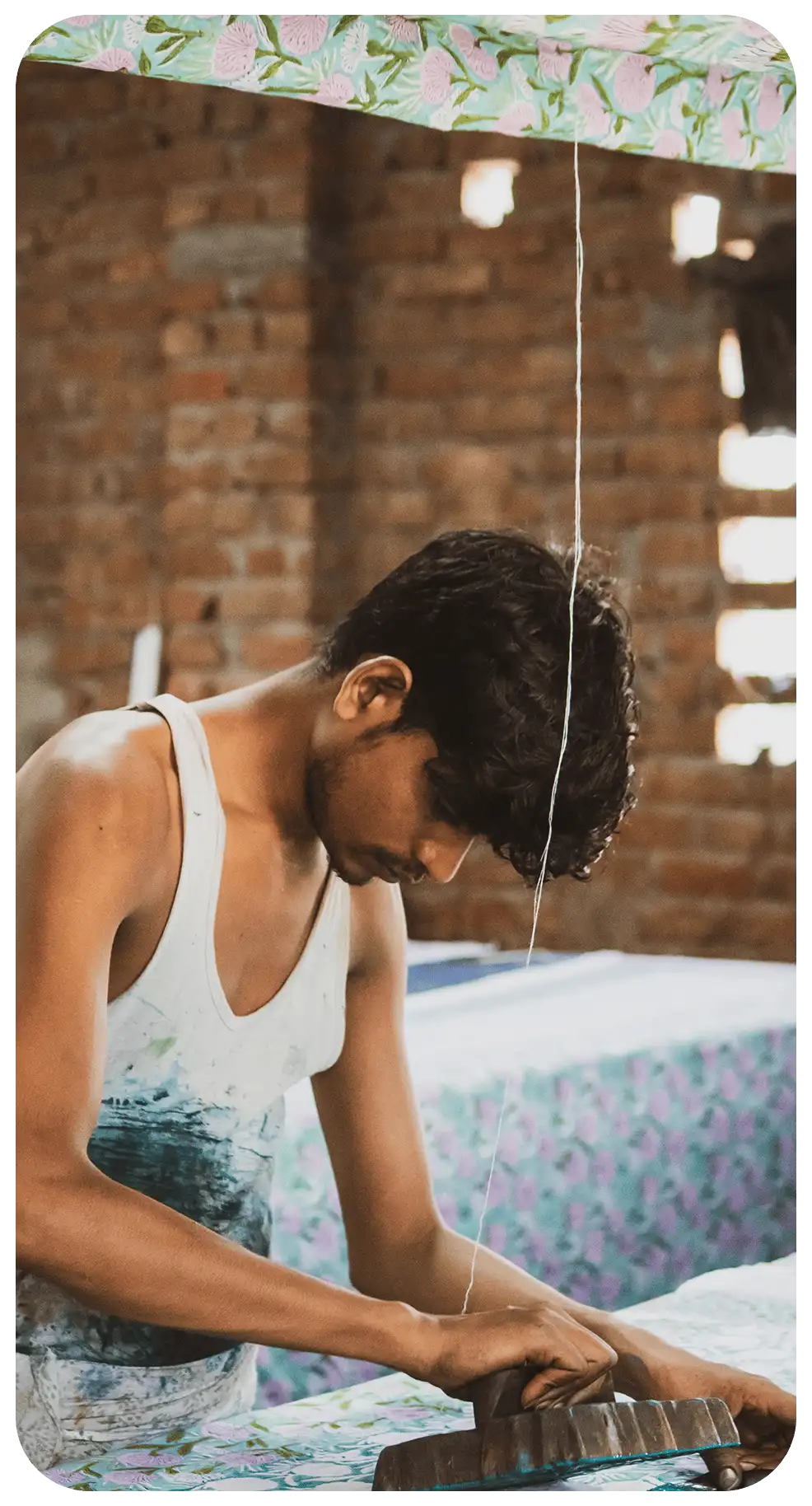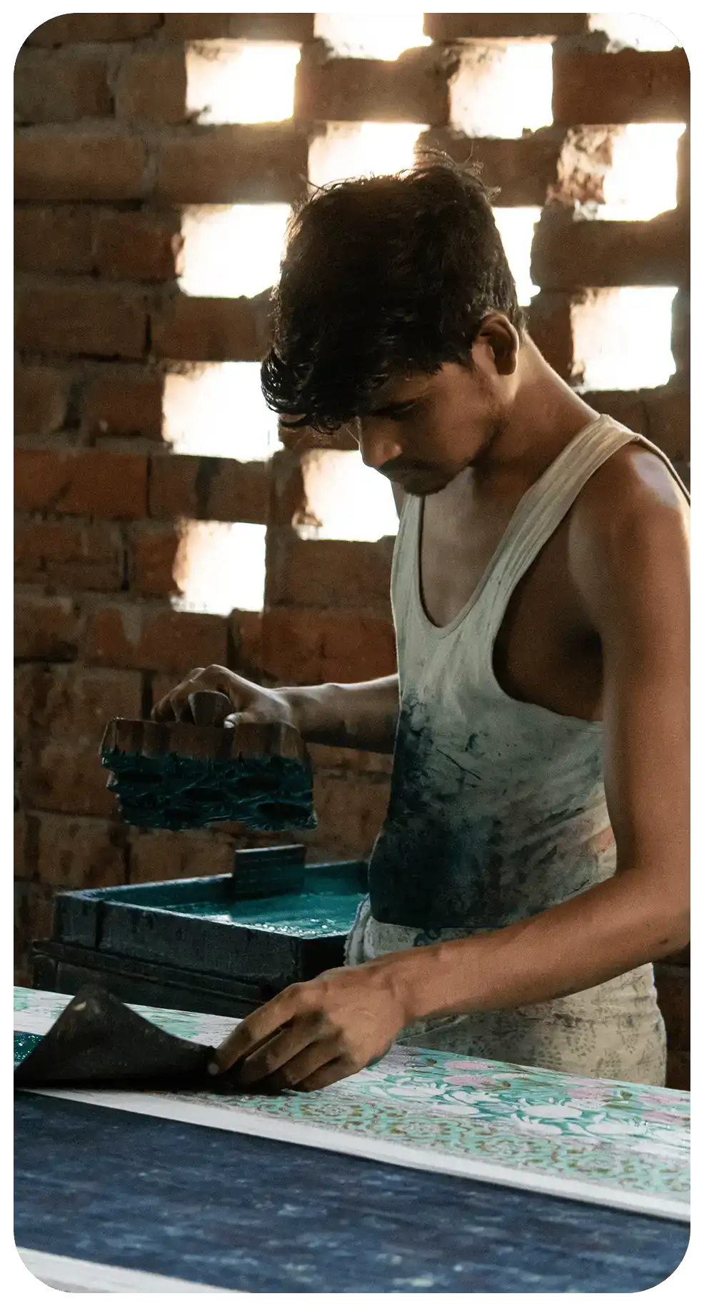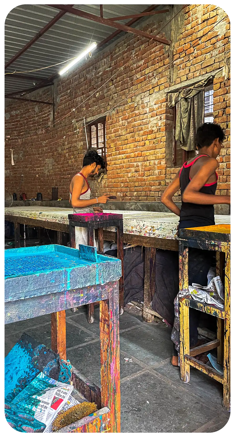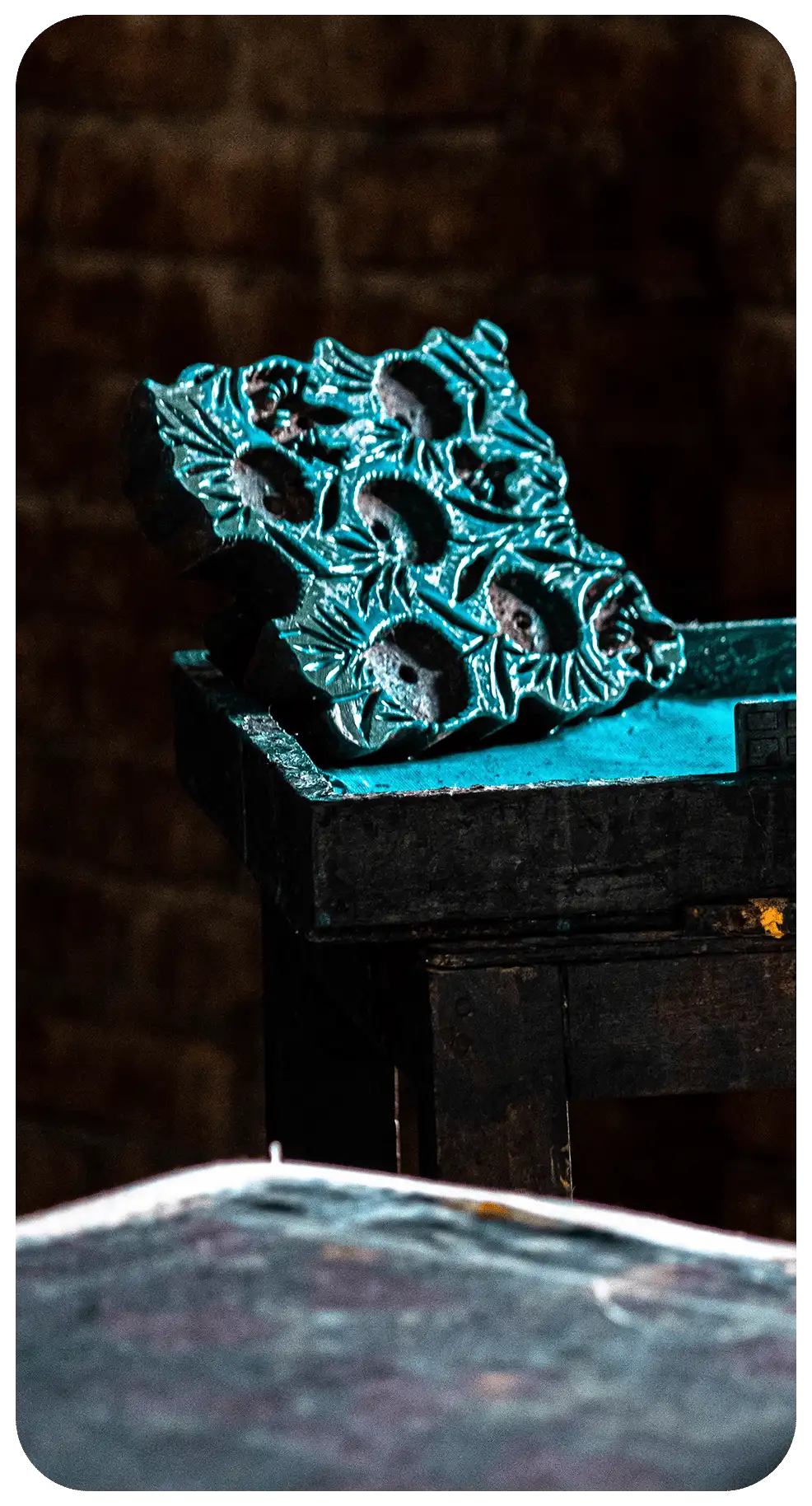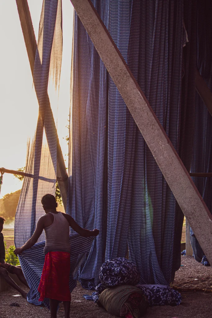 Our photoshoot tells a captivating tale through raw factory shots, candid moments with artisans, the vivid and beautiful spectrum of dyes, the unadulterated allure of raw fabric, the profound thoughts of artisans, and the narrative woven into the prints adorning the cloth.